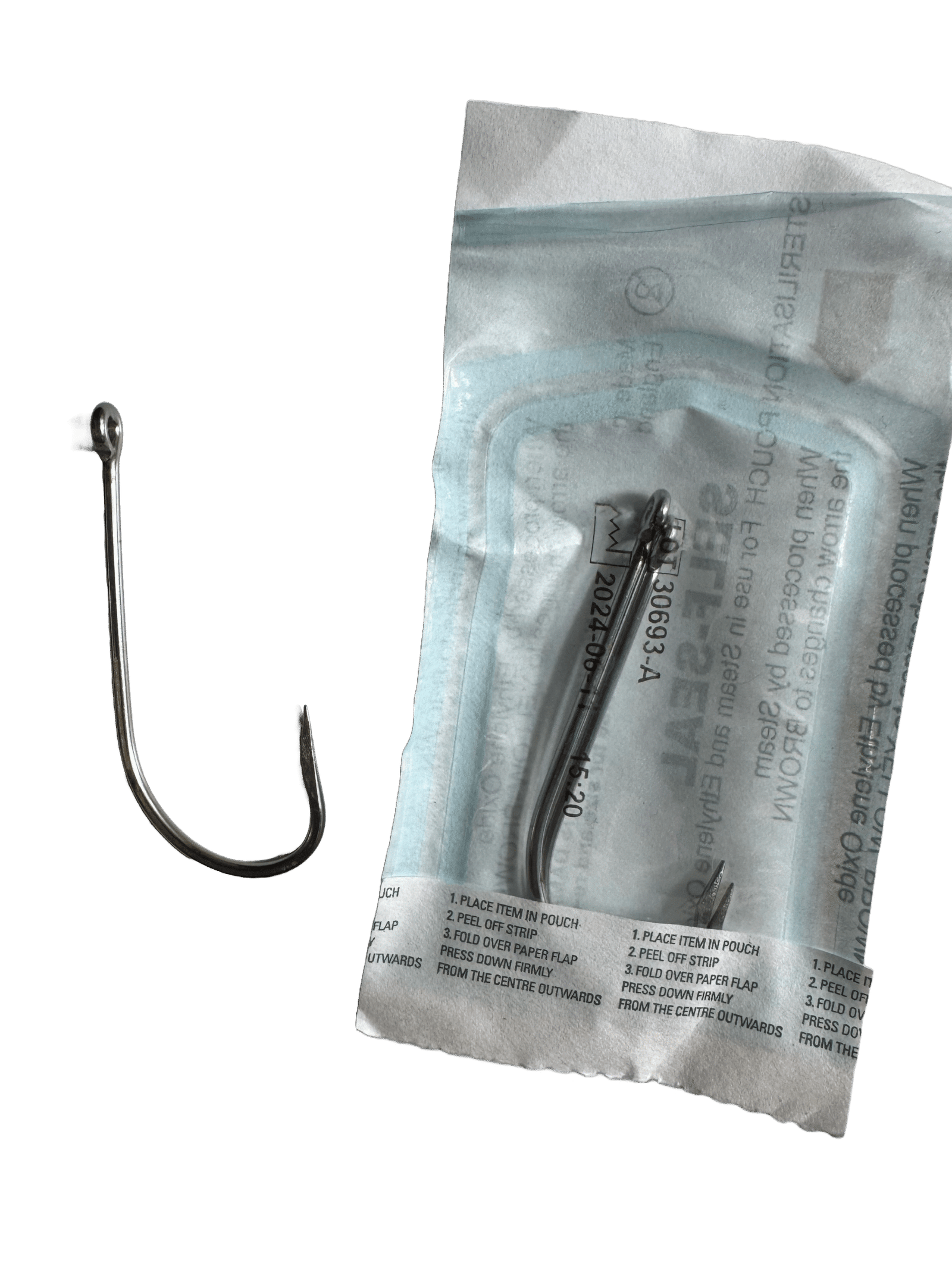 These stainless steel hooks have had the barbs filed and smoothed and are professionally autoclaved and sterile packed in-house.